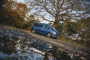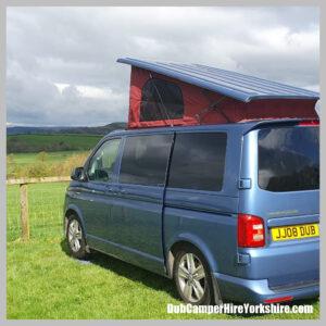 He has a 6 Speed manual gear box and can be driven on a standard car licence. Within the ultra sleek pop-top is a full width bed, making this camper 4 berth alongside the safety rated rock and roll bed.